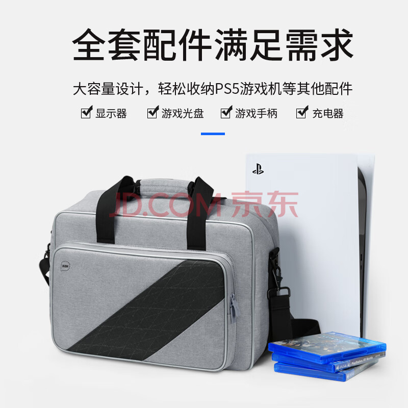 商品相册:BUBM大容量收纳包 PS5游戏机包全套配件整理包斜挎手提便携收纳包灰色第