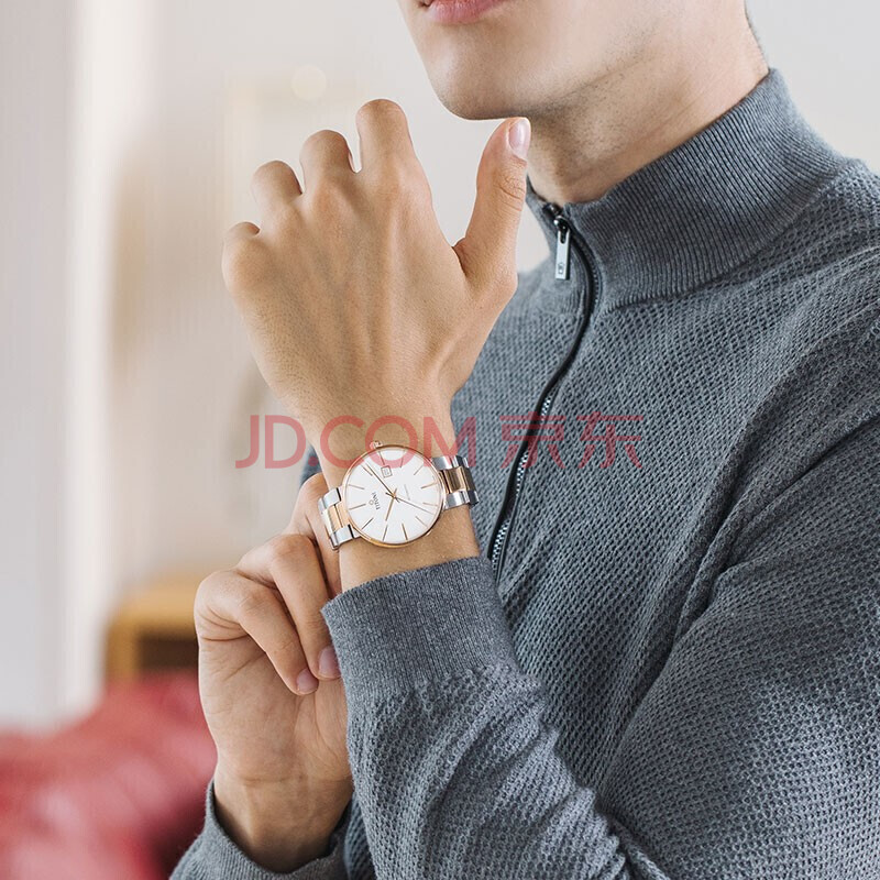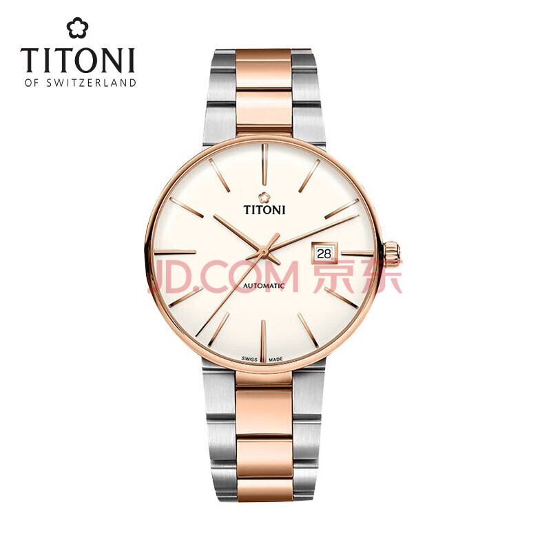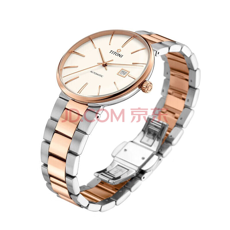 商品相册:梅花(Titoni)瑞士手表 空中霸王系列机械间金钢带男士腕表83627-SRG-606礼物第