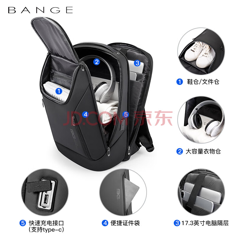 商品相册:班歌背包高端商务出差旅行包大学生书包17.3英寸电脑双肩包男礼物灰色第