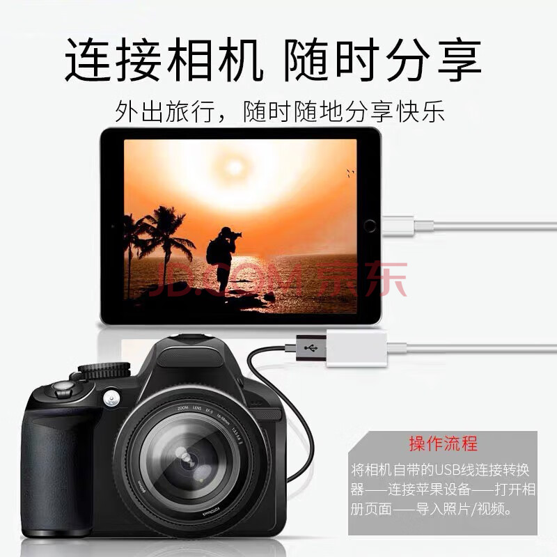 商品相册:JOWOYE苹果手机平板转接头iPhone/iPad转换器lightning转USB3.0外接U盘鼠标键盘电子琴声卡OTG相机转换线第