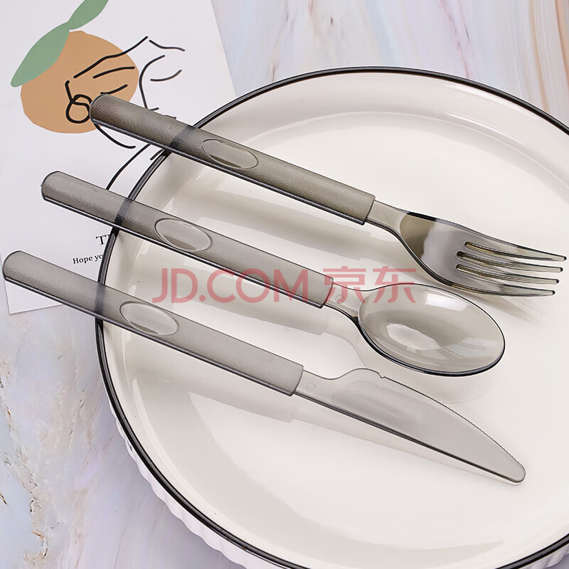 商品相册:佳茉一次性牛排刀叉勺西餐餐具加厚加长餐刀勺子叉子三件套20套第