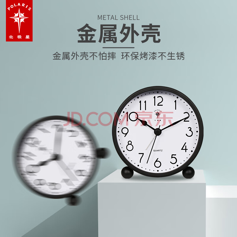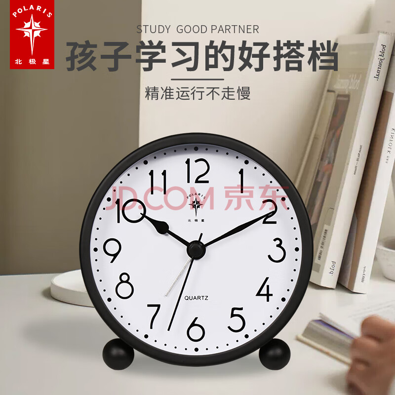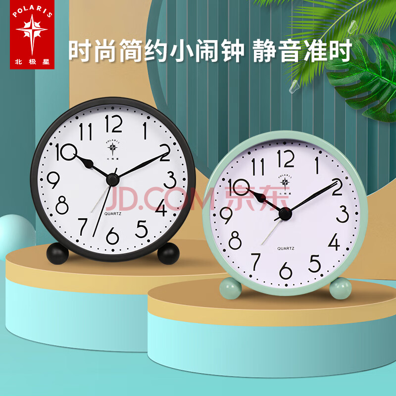 商品相册:北极星(POLARIS)闹钟 创意学生儿童静音时钟时尚简约床头小清新台钟懒人钟表 SN30黑【开学季】第