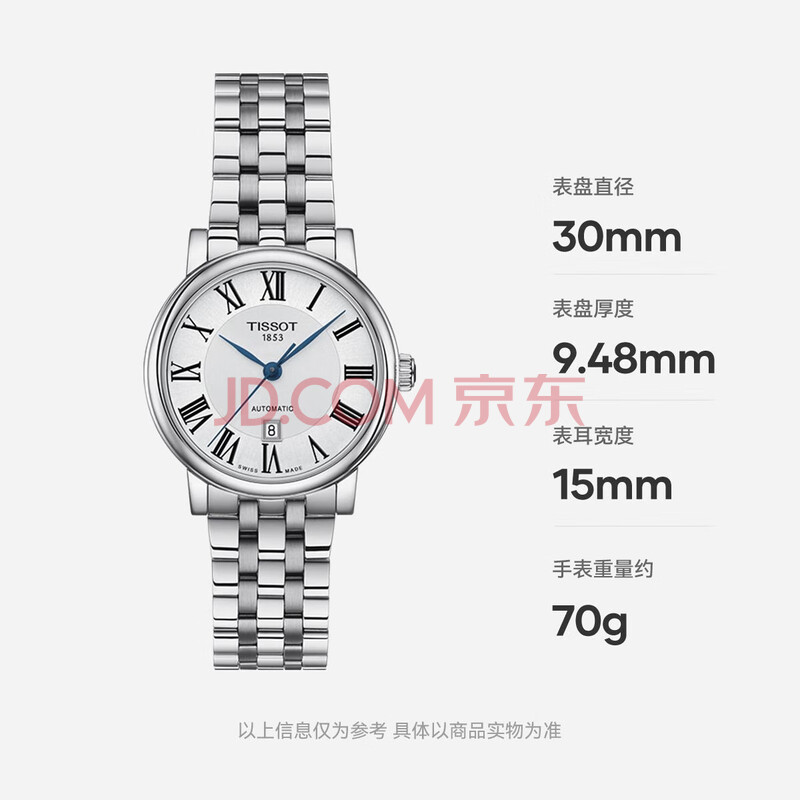 商品相册:天梭(TISSOT) 卡森臻我系列女表 瑞士自动机械女士钢带腕表商务表生日礼物第