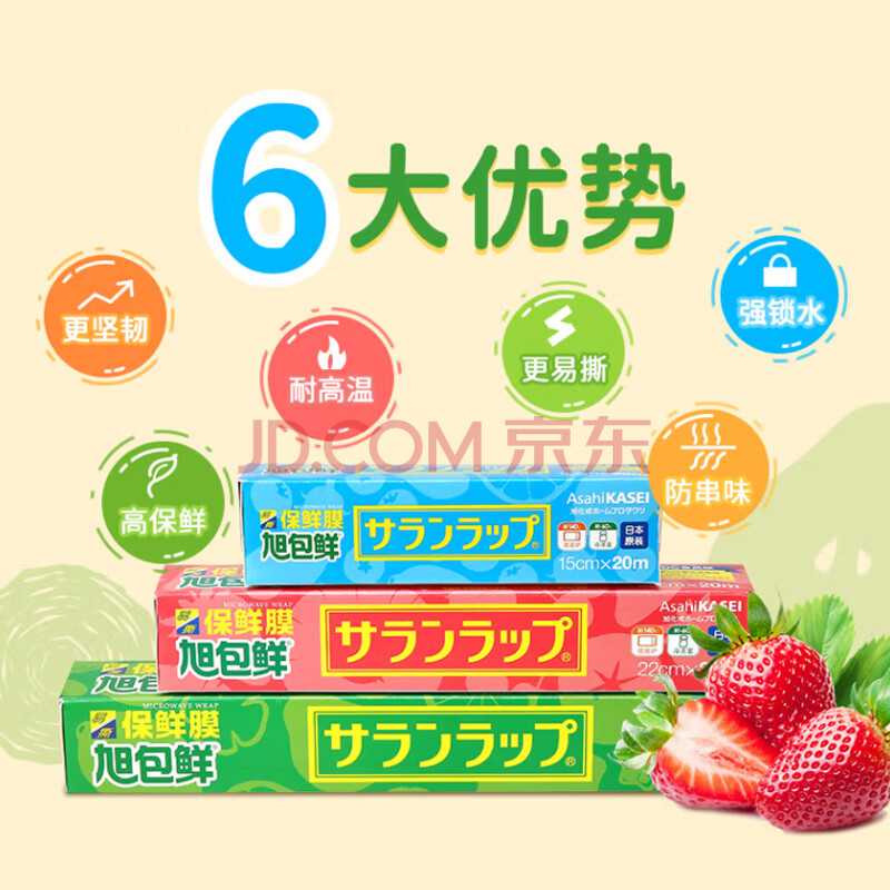 商品相册:旭包鲜保鲜膜食品级 PVDC保鲜膜耐高温可微波炉30cm*20m*3连包 家用大卷第