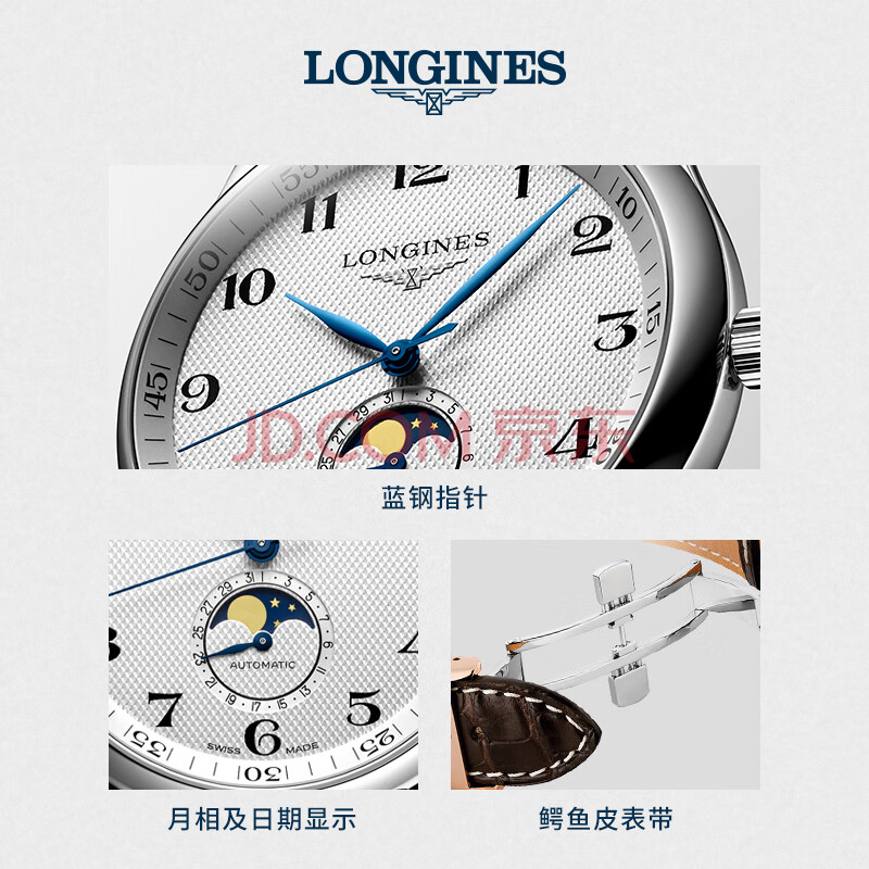 商品相册:浪琴(LONGINES)瑞士手表 名匠系列月相腕表 男士皮带机械表L29194783第