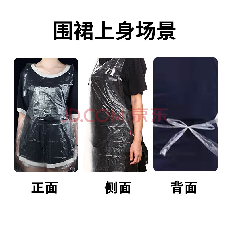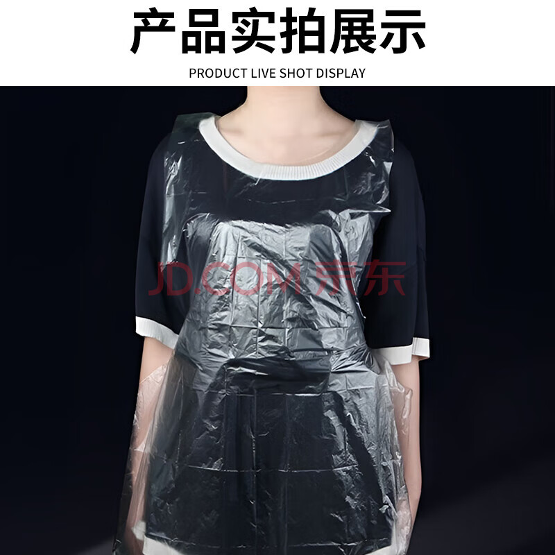 商品相册:庭好一次性围裙100只装透明PE加厚材质非独立包装火锅龙虾餐饮防油第