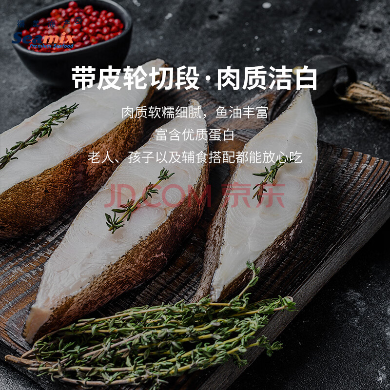 商品相册:禧美海产冷冻格陵兰比目鱼切段1斤/袋5-7块 烧烤 带皮切段 海鲜第