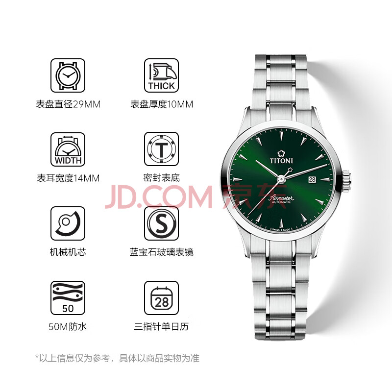 商品相册:梅花(Titoni)瑞士手表 女士机械表空霸系列小绿表进口腕表23733-S-673礼物第
