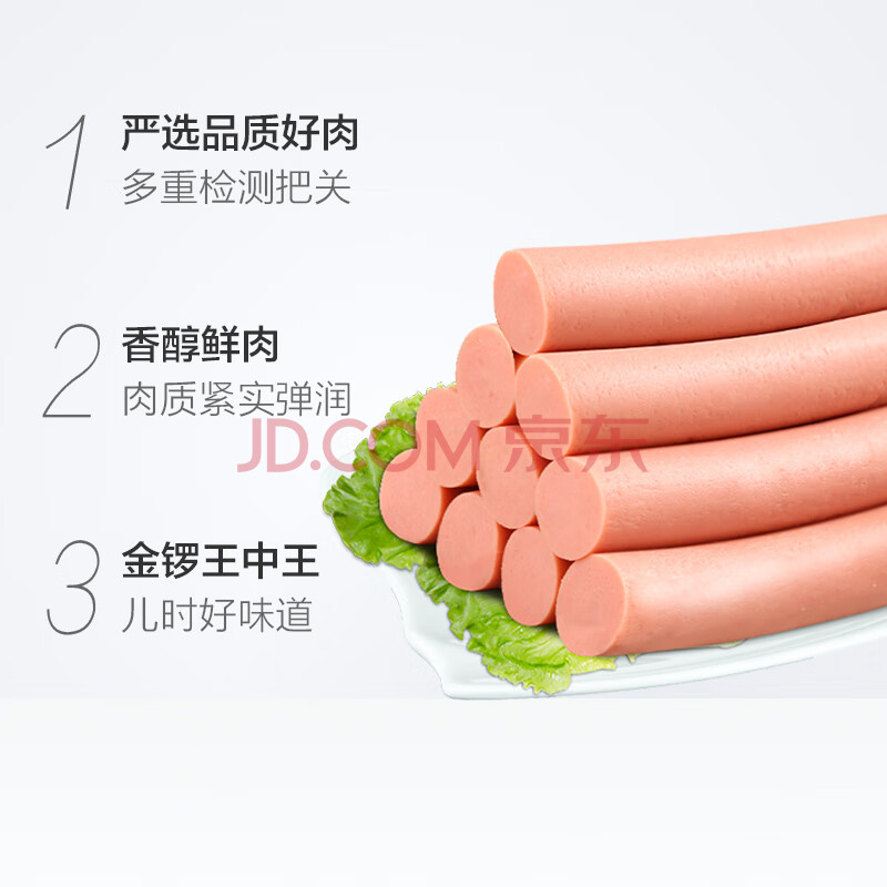 商品相册:金锣 无淀粉王中王火腿肠 35g*9支*2袋 共630克 休闲零食方便即食节日食品 速食香肠 实惠 新老包装随机发货第