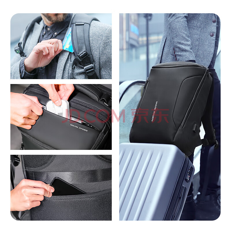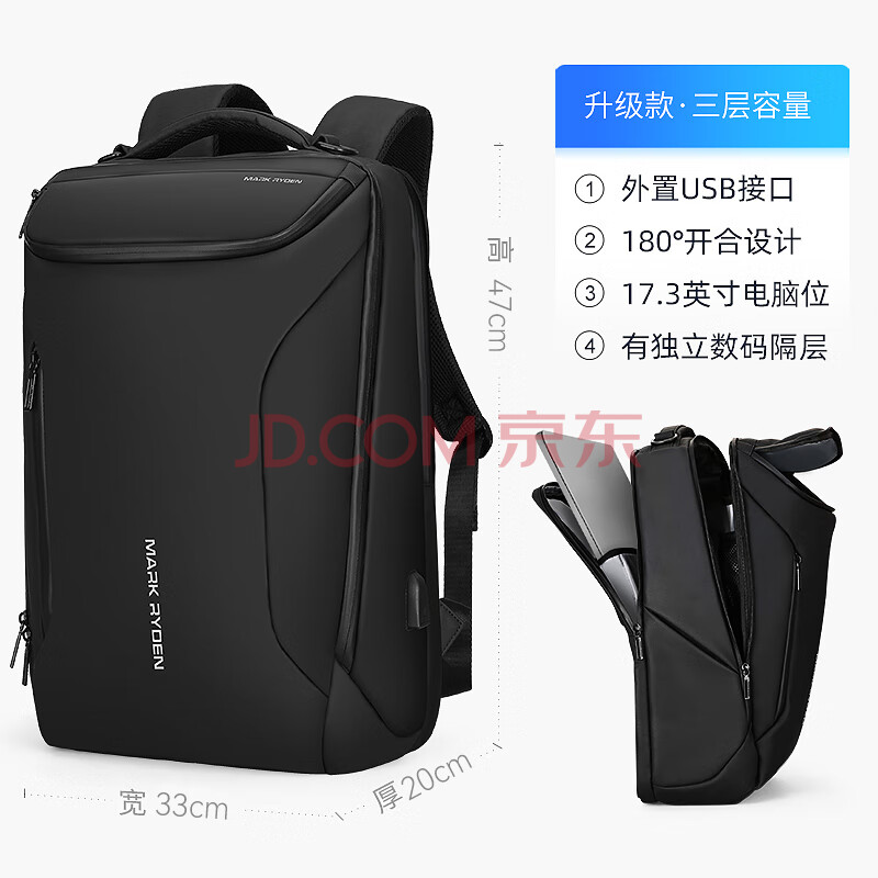 商品相册:马可·莱登背包男士17.3英寸笔记本电脑包商务双肩包书包MR9031精英黑升级款第