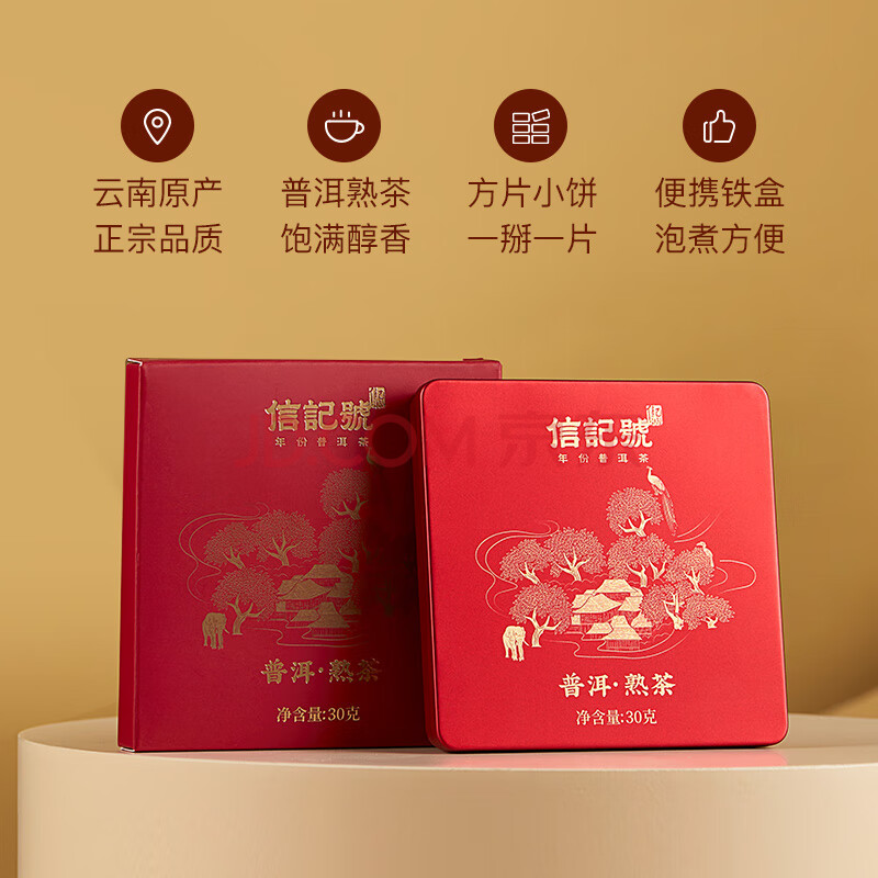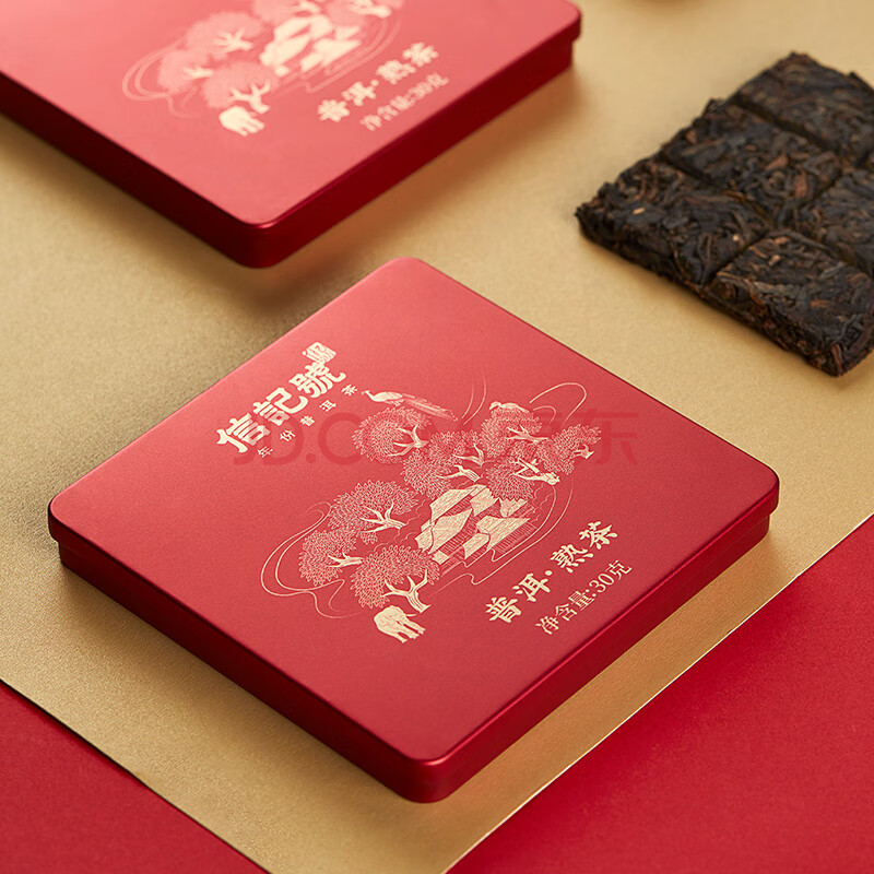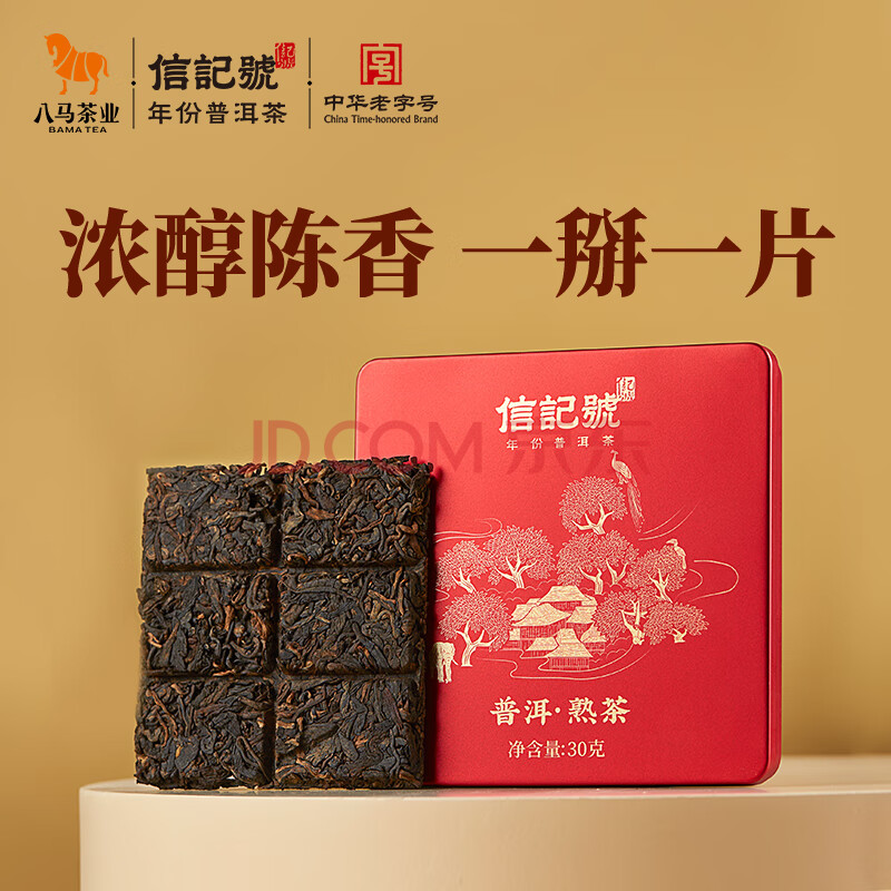 商品相册:八马茶业信记号 中华老字号 普洱茶 临沧熟普30g 2021年方片小饼 茶叶盒装第