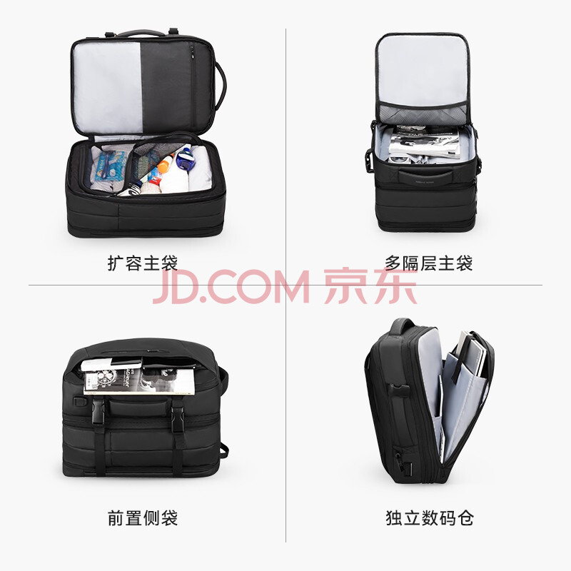 商品相册:马可·莱登背包男双肩包可扩容大容量17.3英寸旅行书包MR9299典雅黑升级版第
