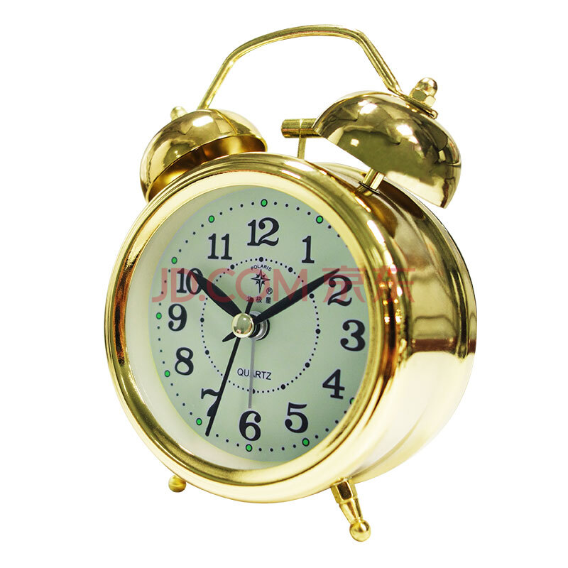 商品相册:北极星(POLARIS)闹钟复古石英钟表夜光闹铃创意学生儿童卧室床头夜灯闹表6008金色【开学季】第