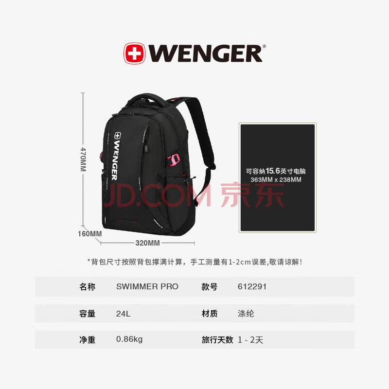 商品相册:威戈瑞士军刀15.6英寸笔记本电脑包商务双肩包背包男女出差旅行包第