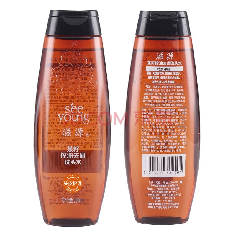 商品相册:滋源茶籽控油去屑洗头水男女士洗发水清爽无硅油200ml第