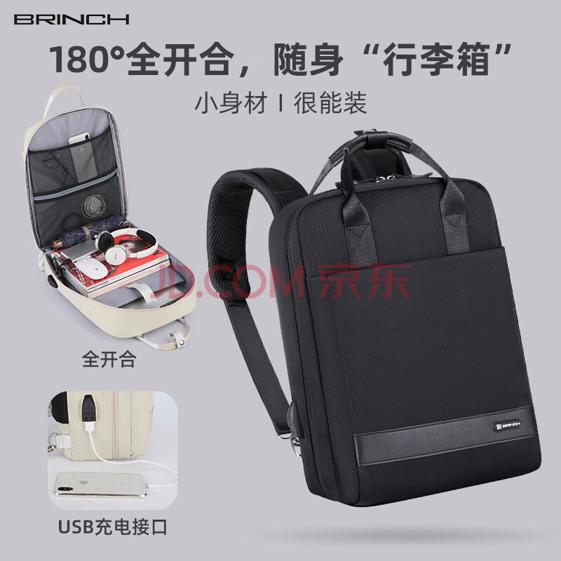 商品相册:BRINCH双肩笔记本电脑包男女13/14英寸大容量适用小米华为旅行出差背包第