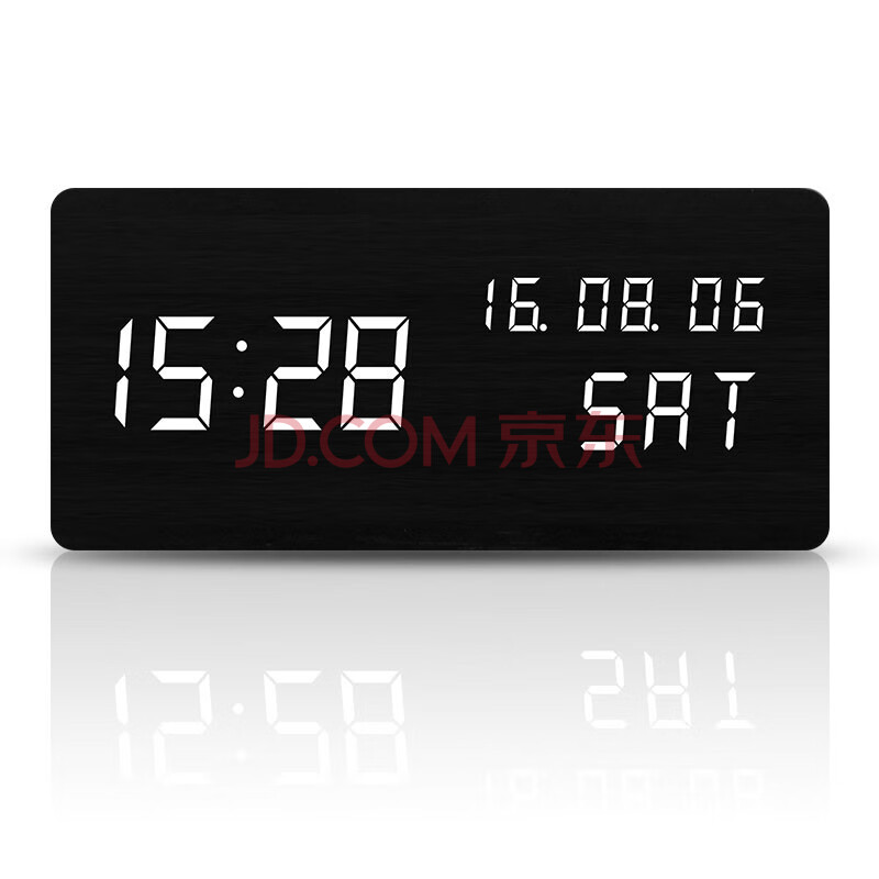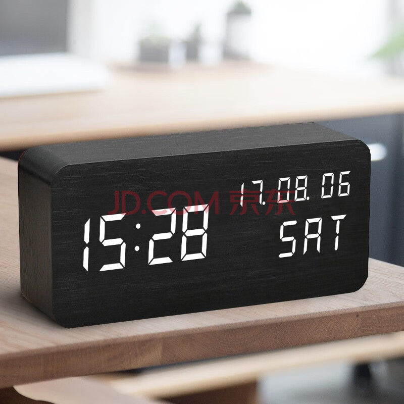 商品相册:摩门(Momen)创意闹钟学生用木质时钟电子闹钟卧室夜光床头简约三组闹铃DN4蓄电大款万年历版黑色开学季第