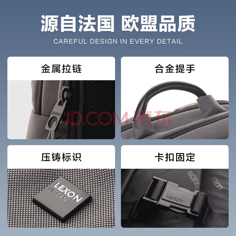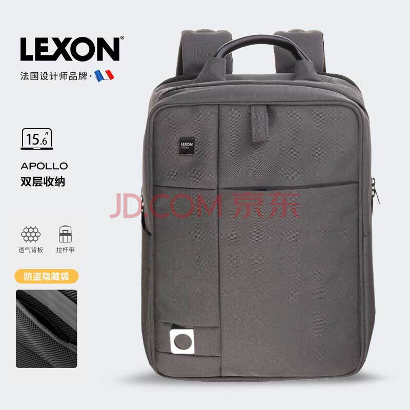 商品相册:乐上(LEXON)双肩包男士电脑包15.6/16英寸笔记本商务背包双层书包旅行包灰色第