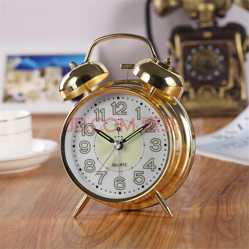 商品相册:北极星(POLARIS)闹钟复古石英钟表个性夜光小闹钟卧室床头夜灯打铃闹表4英寸6409 金色【开学季】第