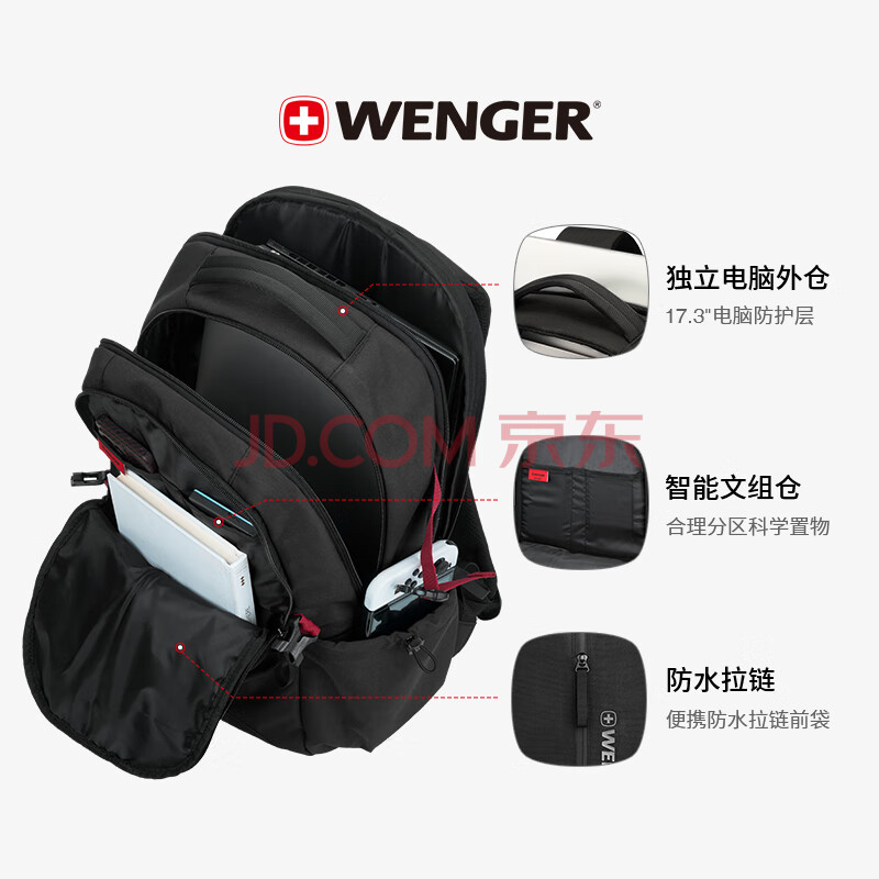 商品相册:威戈17.3英寸笔记本电脑包运动双肩包背包书包大容量旅行包第