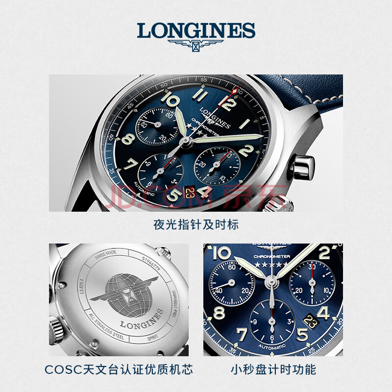 商品相册:浪琴(LONGINES)瑞士手表 先行者系列计时码表 男士皮带机械表 L38204930第