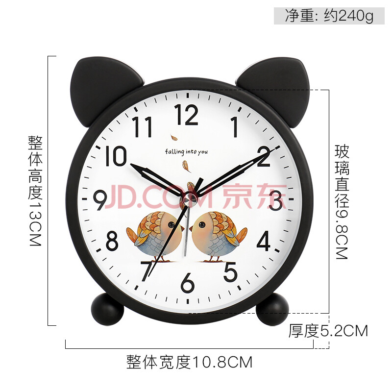 商品相册:汉时(Hense)儿童小闹钟学生专用起床神器卡通桌面时钟懒人床头闹铃HA14黑4.5开学季第