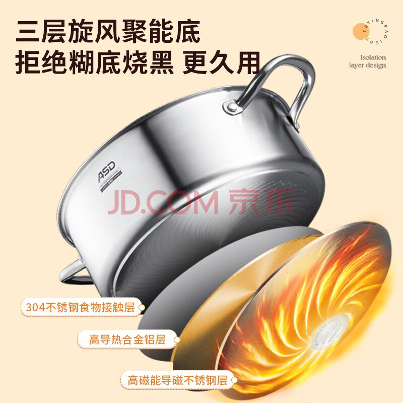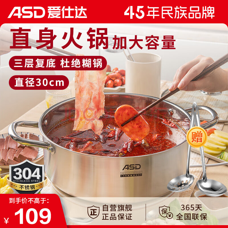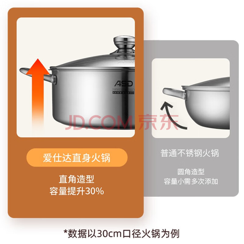 商品相册:爱仕达 ASD 火锅304不锈钢清汤火锅盆30CM火锅燃气电磁炉通用FS30A1WG第