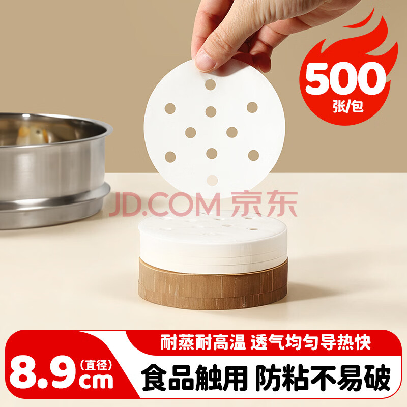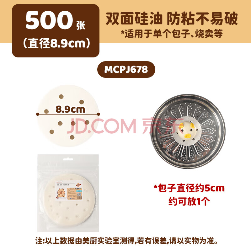 商品相册:美厨(maxcook)蒸笼纸包子垫纸蒸包子纸蒸笼屉纸一次性500张 直径8.9cm MCPJ678第