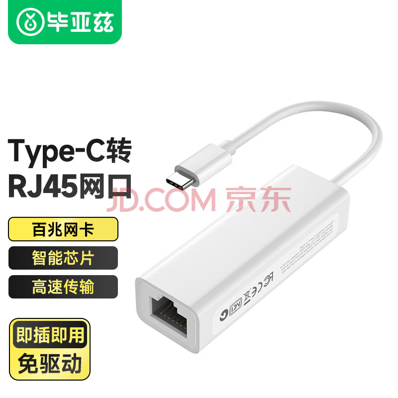 商品相册:毕亚兹 以太网转换器 Type-C转RJ45网口USB-C转有线百兆网卡免驱转网口适用苹果笔记本macbook ZH18-PC第