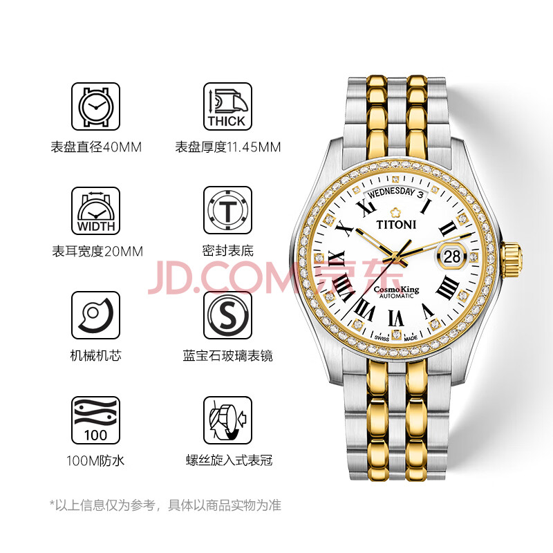 商品相册:梅花(Titoni)瑞士手表男士自动机械腕表 宇宙系列间金钢带797-SY-DB-019礼物第