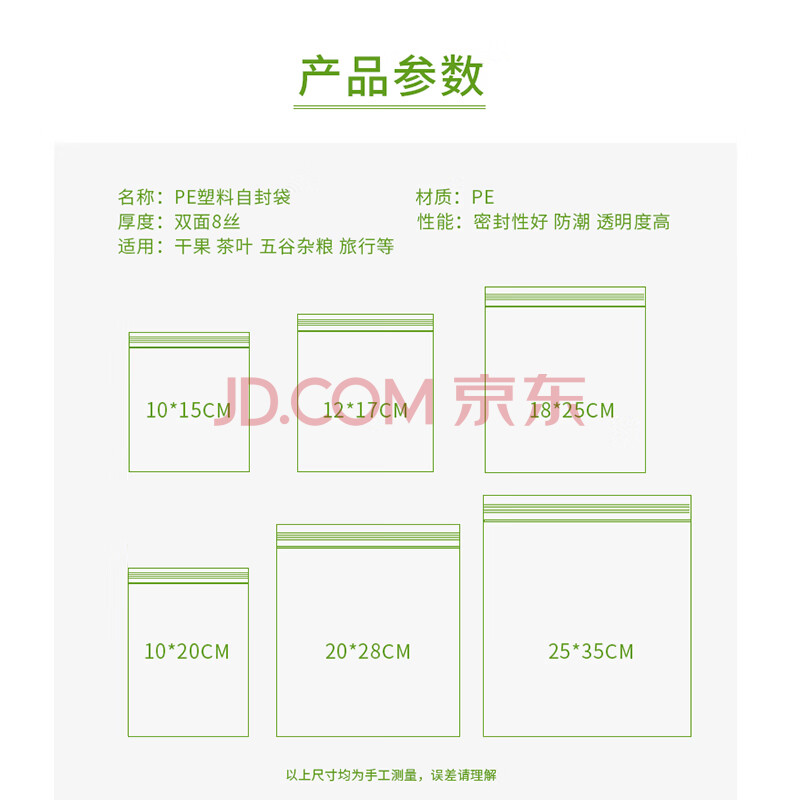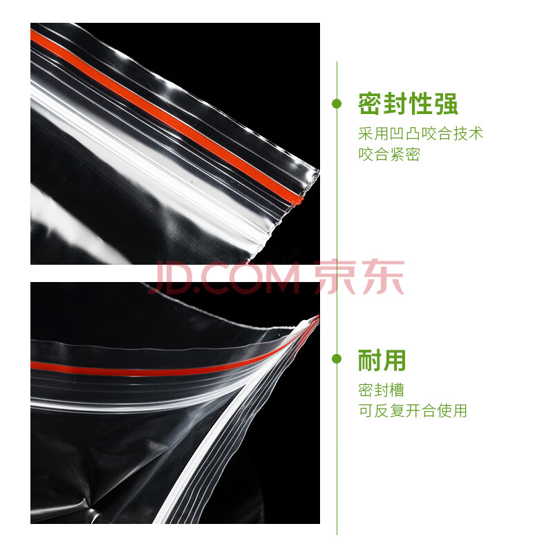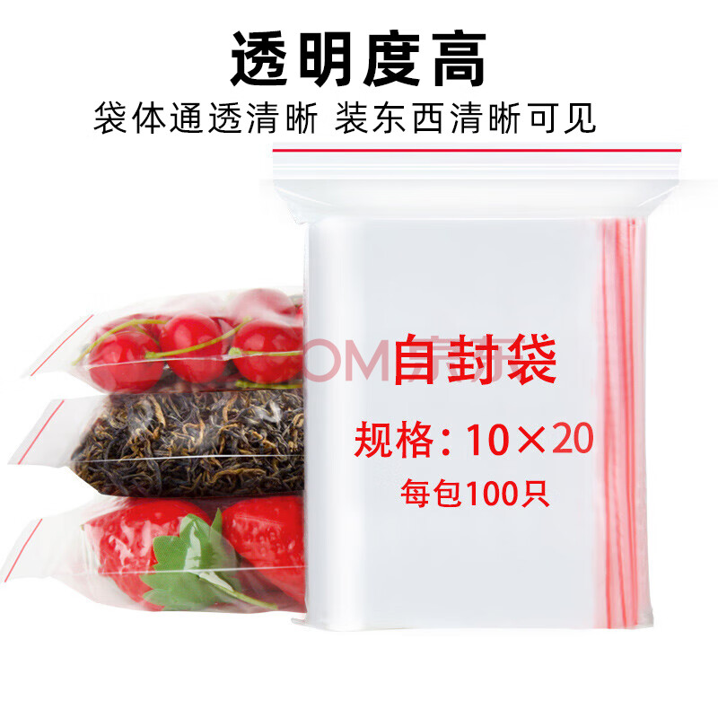 商品相册:庭好加厚防水食品PE10号25*35cm100只装透明自封袋收纳袋封口袋保鲜袋第