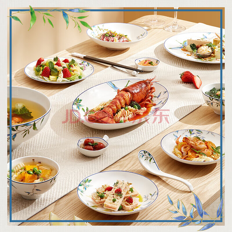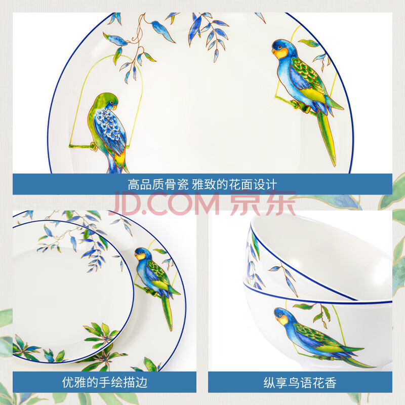 商品相册:玛戈隆特碗碟套装骨瓷餐具套装轻奢中国风 礼盒包装 6人份32头鹦鹉第