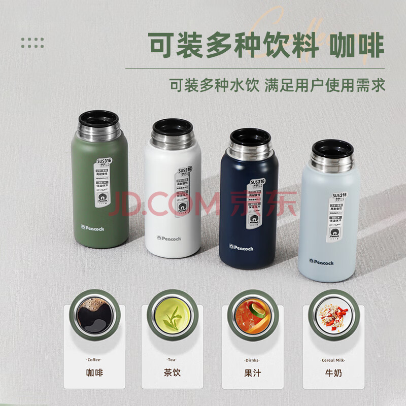 商品相册:孔雀(Peacock)保温杯 316不锈钢咖啡杯水杯茶杯 便携学生保冷杯第