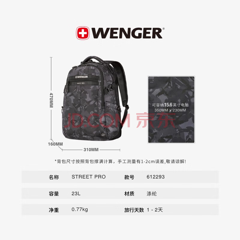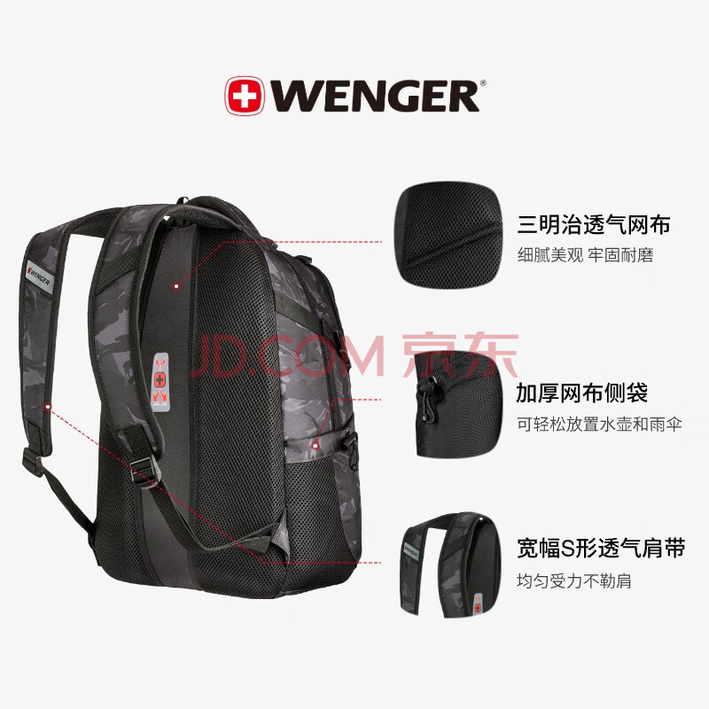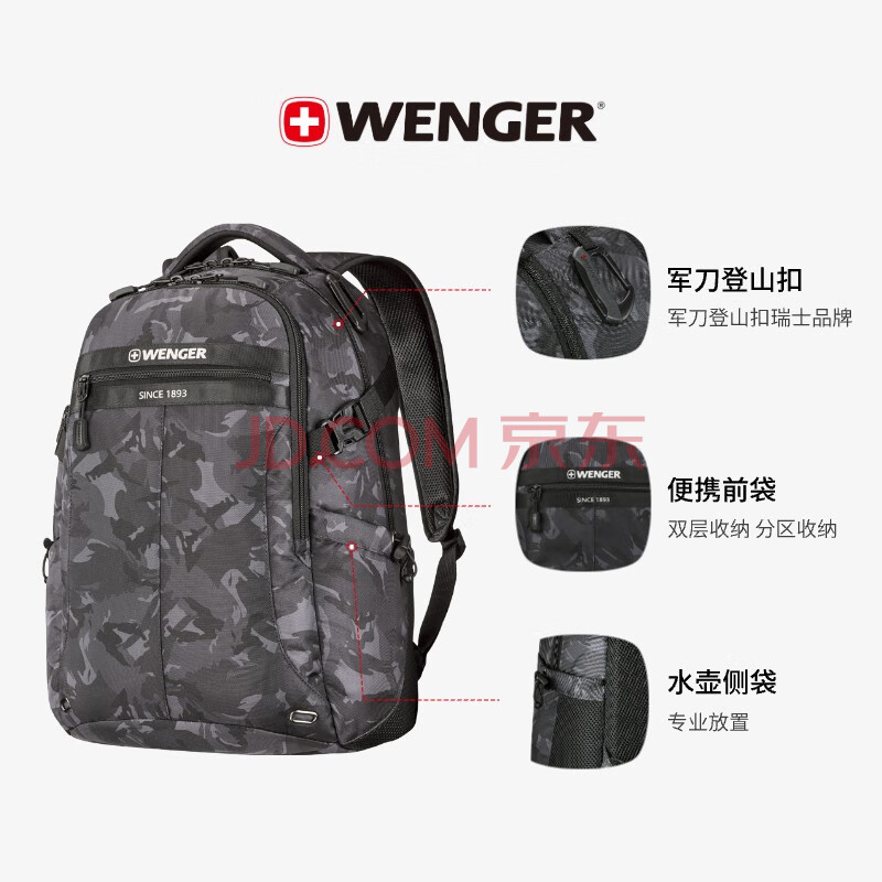 商品相册:威戈瑞士军刀双肩包15.6英寸电脑包商务通勤背包户外黑出差旅行包第