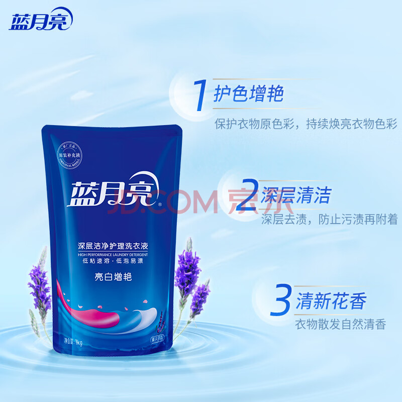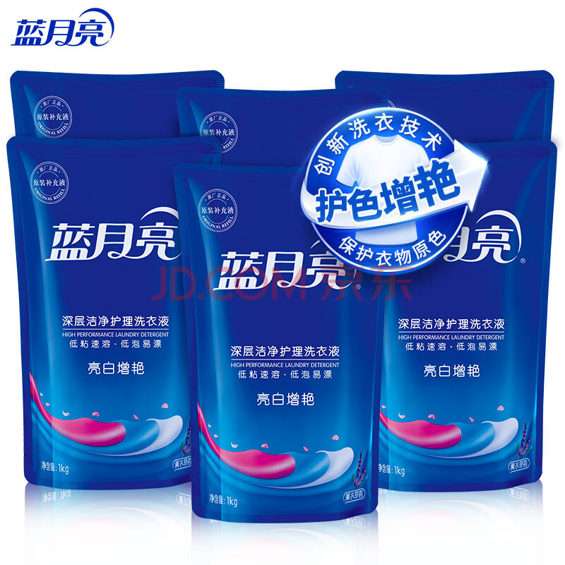 商品相册:蓝月亮 亮白增艳洗衣液袋装(薰衣草香)1kg*6袋 强效去污 护色增艳第