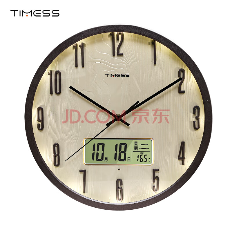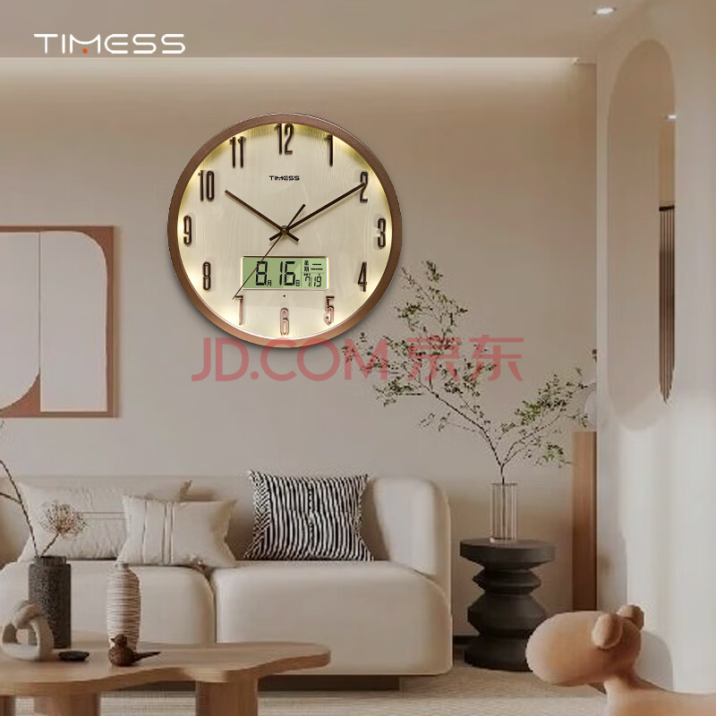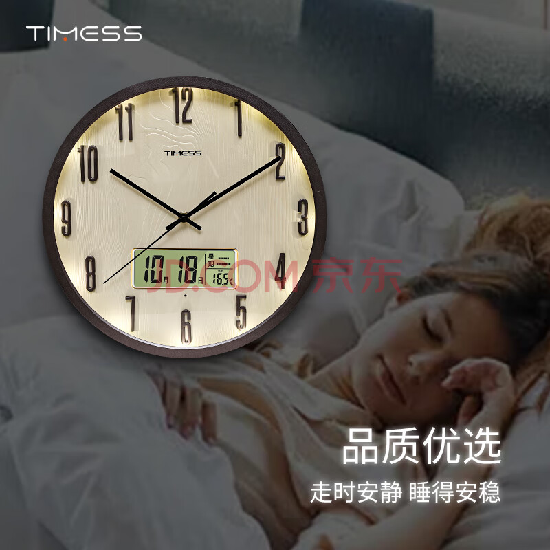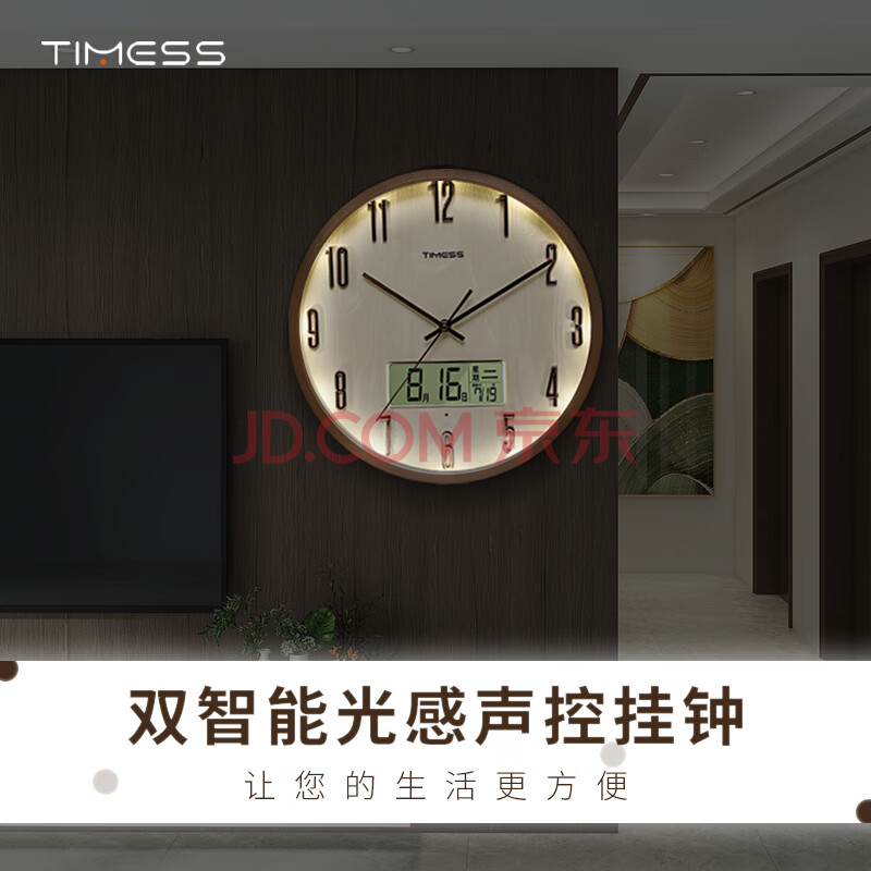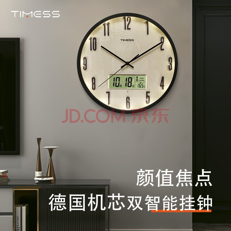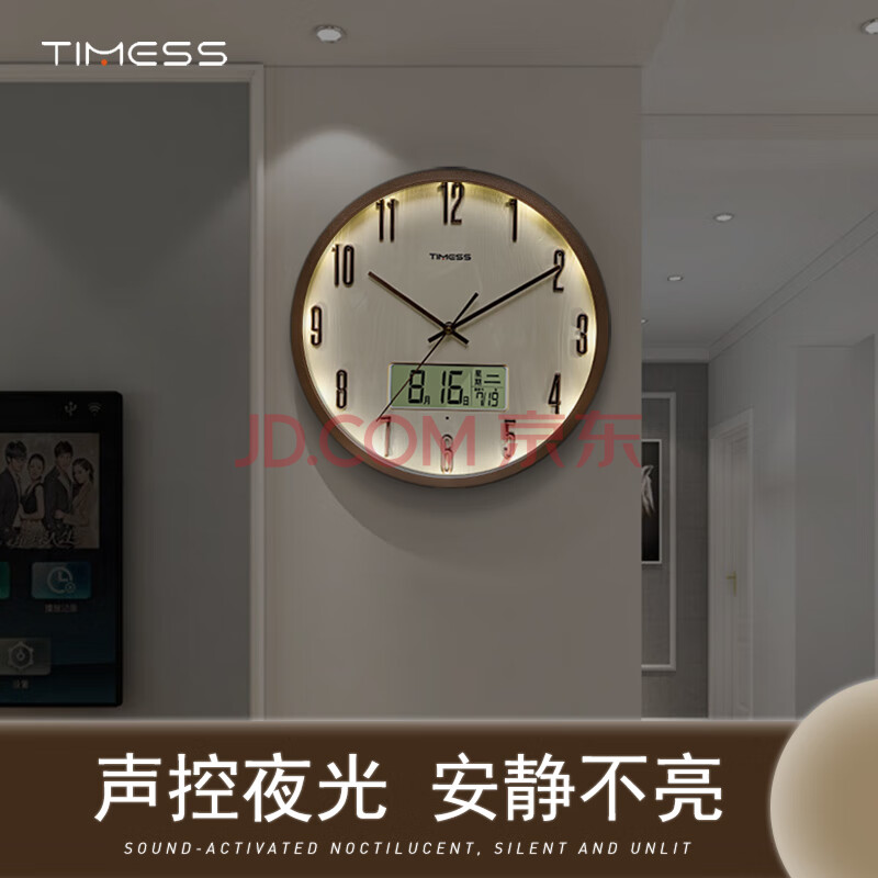 商品相册:Timess 挂钟钟表客厅家用万年历时钟智能夜光时尚2024挂墙石英钟36cm第