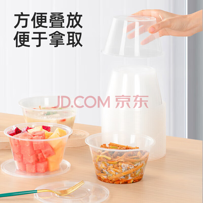 商品相册:特美居(temeiju)一次性饭盒圆形透明餐盒加厚带盖野餐打包盒水果便当盒50套1000型第
