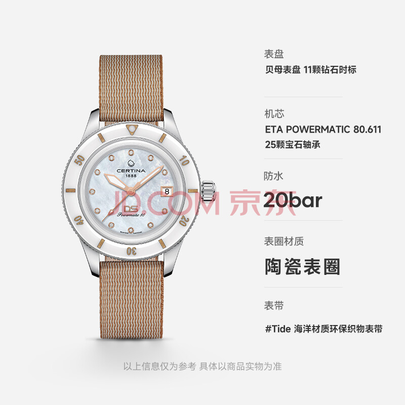 商品相册:雪铁纳(Certina)瑞士手表DS PH200M系列陶瓷贝母盘机械女表第