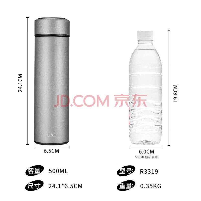 商品相册:然也保温杯大学生水杯304不锈钢泡茶杯子500ml太空灰R3319第