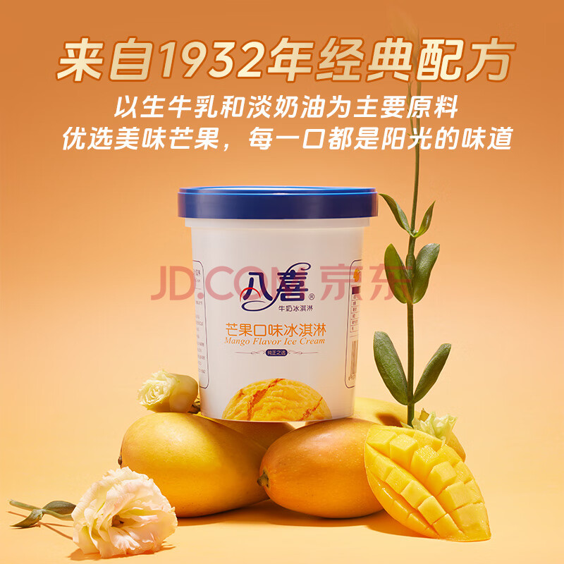 商品相册:八喜冰淇淋 芒果口味550g*1桶 家庭装 生牛乳冰淇淋桶装第1张/共6