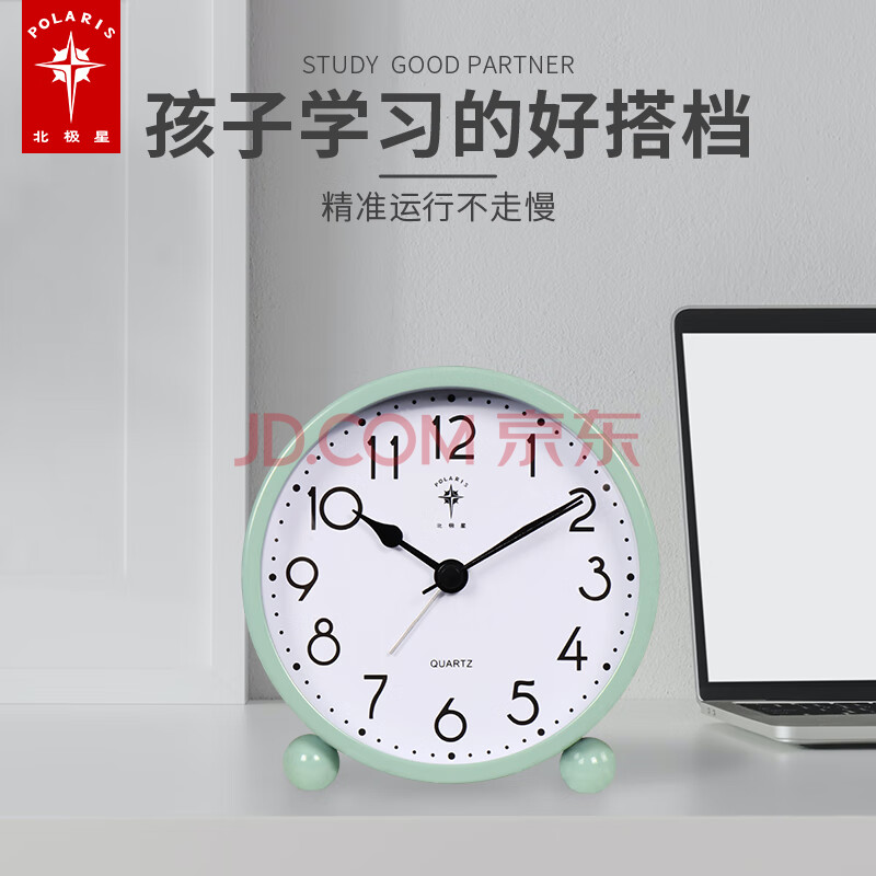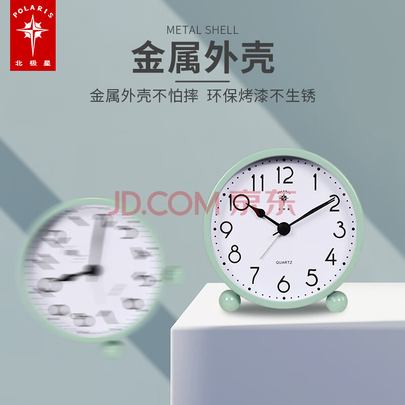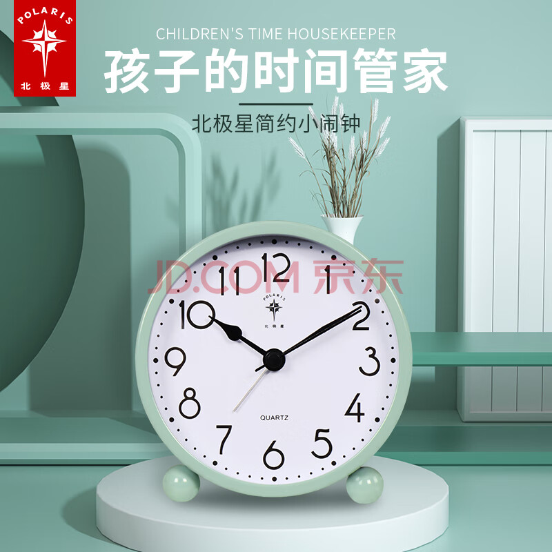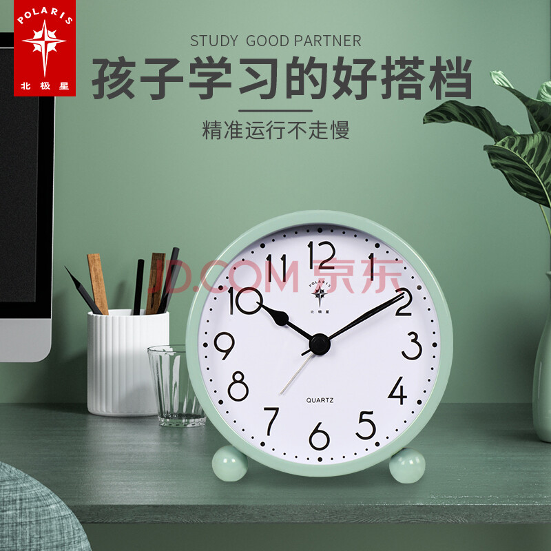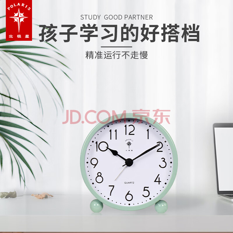 商品相册:北极星(POLARIS)闹钟儿童学生钟床头时尚简约金属静音小座钟懒人台钟 SN30绿【开学季】第