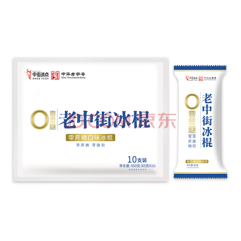 商品相册:中街冰点 老中街冰棍 零蔗糖雪糕 65克*10支冰激凌 冰淇淋第