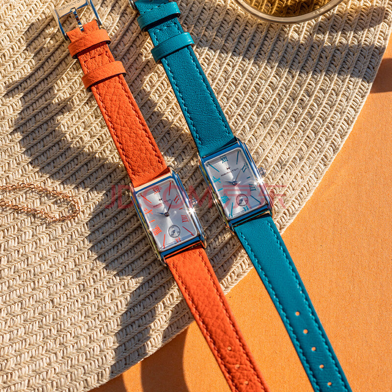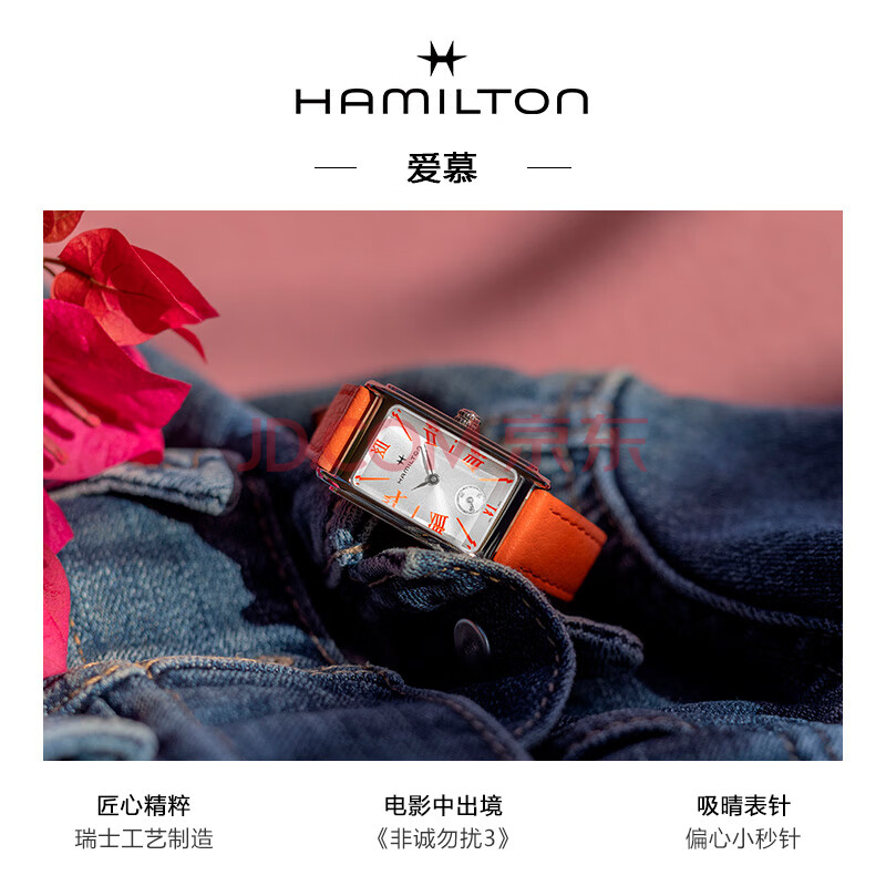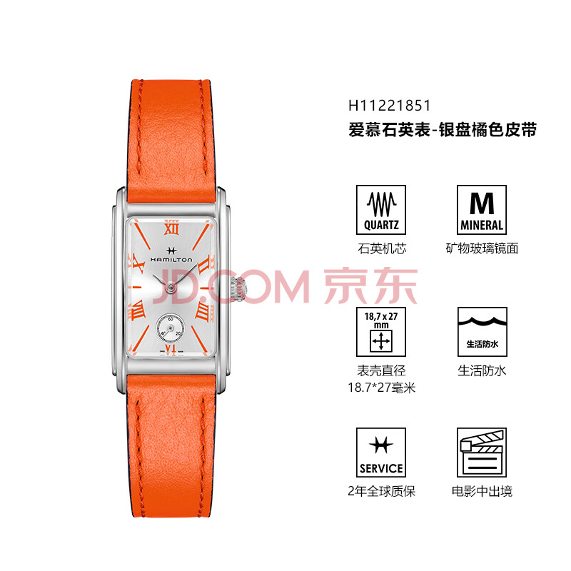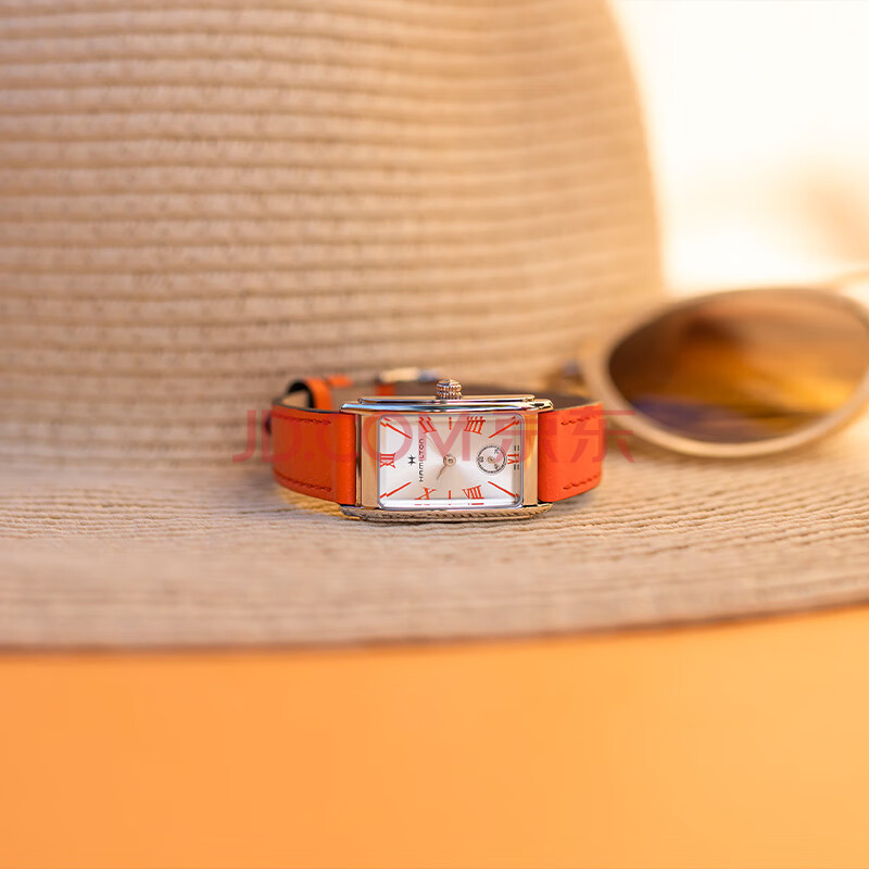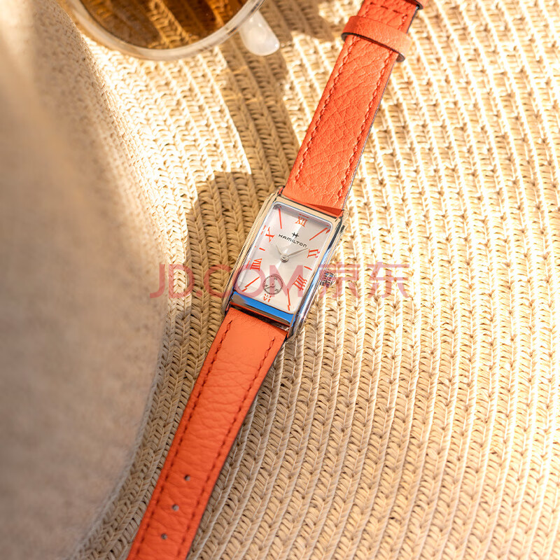 商品相册:汉米尔顿(Hamilton)女士手表石英表瑞士表 经典爱慕小方块珊瑚橙色皮带 小方糖手表第