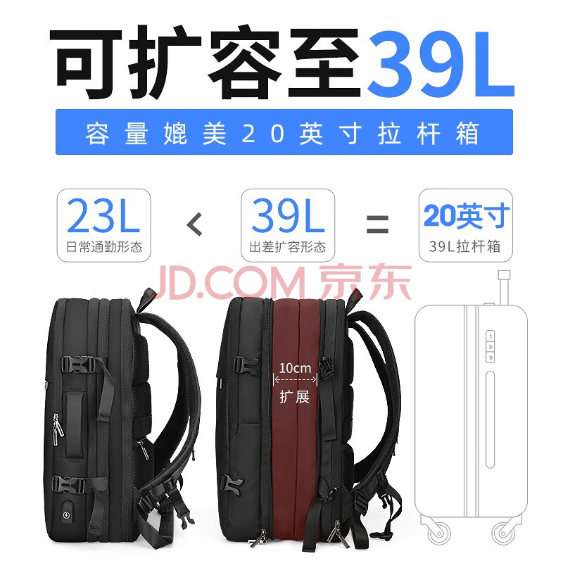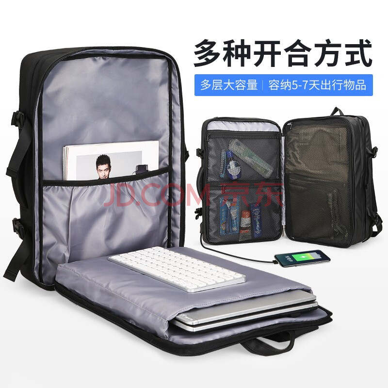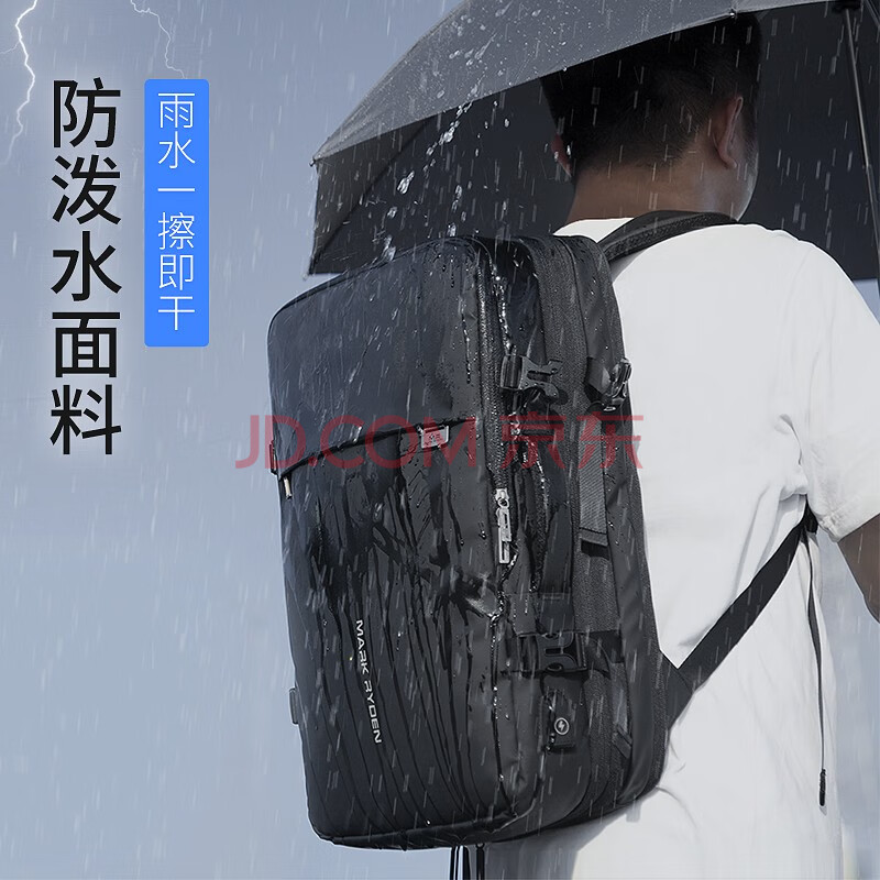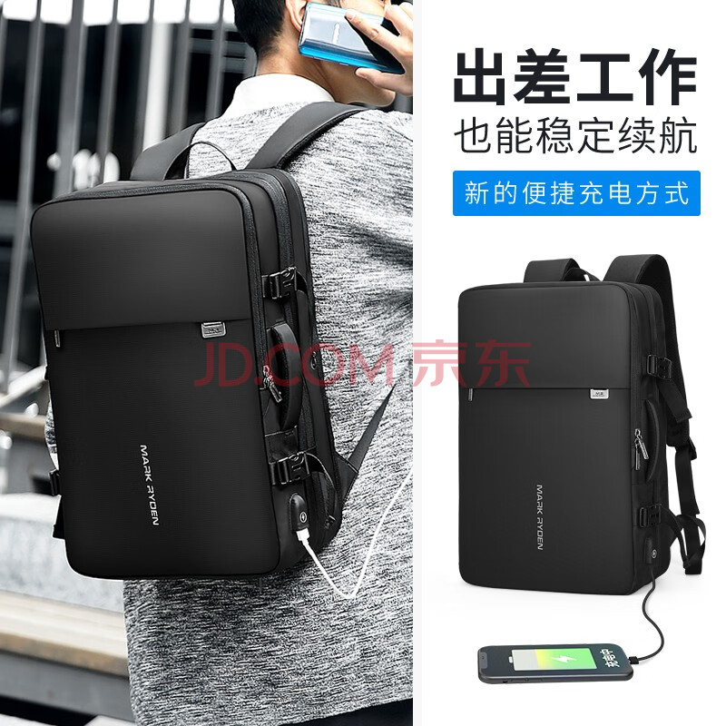 商品相册:马可·莱登书包可扩容背包大容量商务旅行双肩电脑包男MR8057炫酷黑至尊版第