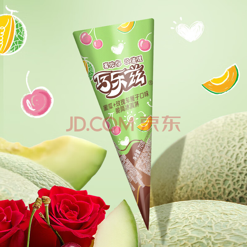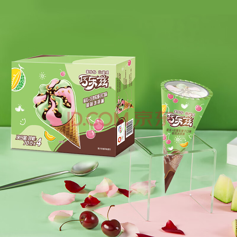商品相册:伊利巧乐兹哈密瓜玫瑰车厘子味脆筒冰淇淋70克/支*4支第