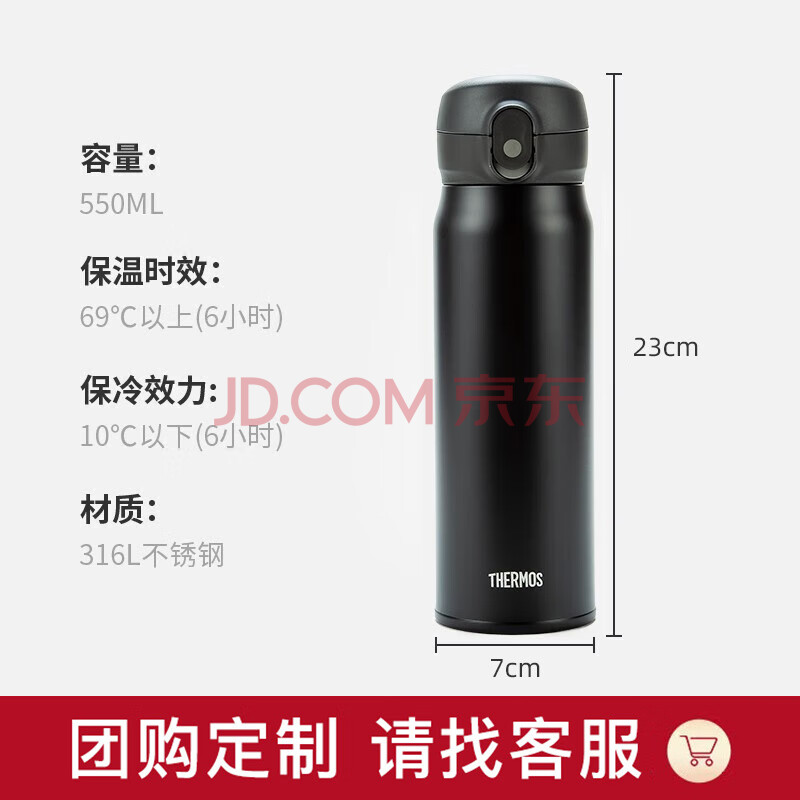 商品相册:膳魔师(THERMOS)保温杯550ML高真空大容量不锈钢礼品杯推推杯TCMC-550S BK第