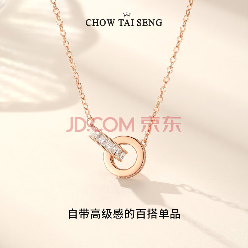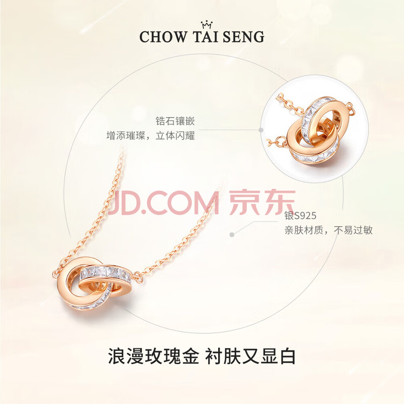 商品相册:周大生环环相扣项链女款女生轻奢小众玫瑰金色银项链女士生日礼物第