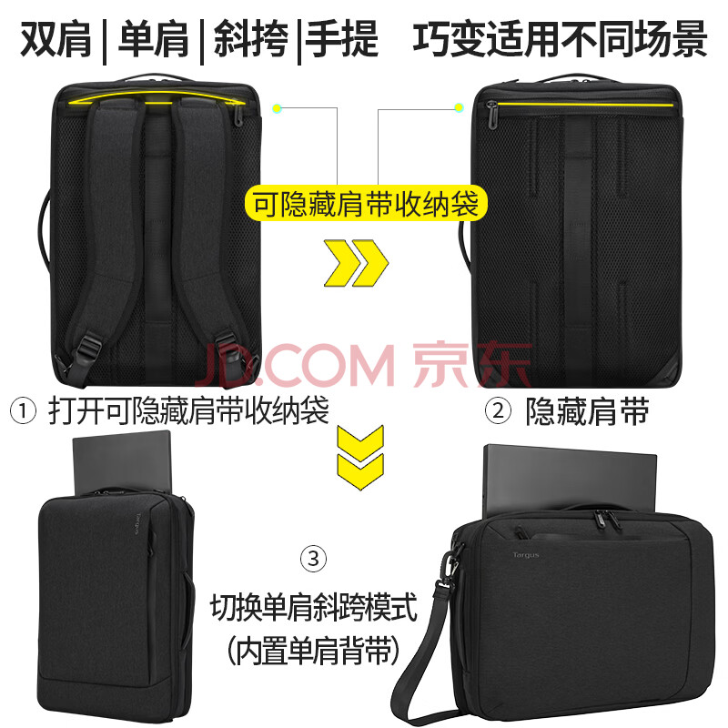 商品相册:泰格斯(TARGUS)双肩电脑包15.6英寸商务背包单肩斜挎公文包多用包 黑 587第
