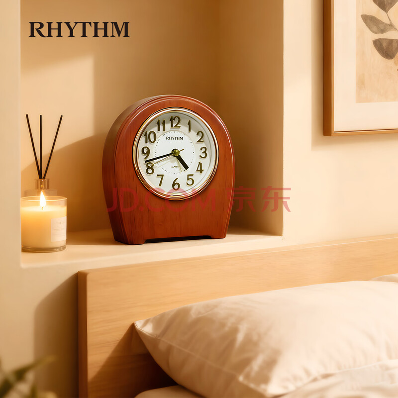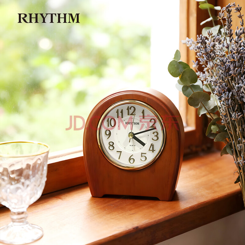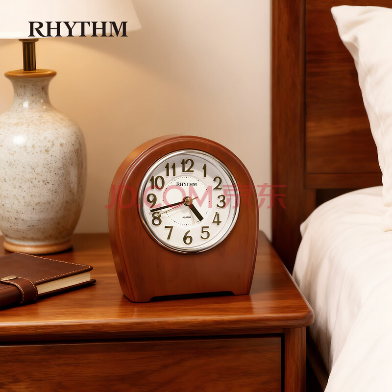 商品相册:丽声(RHYTHM)闹钟简约木制静音床头台钟学生儿童闹表客厅14cm座钟CRE942NR06开学季第