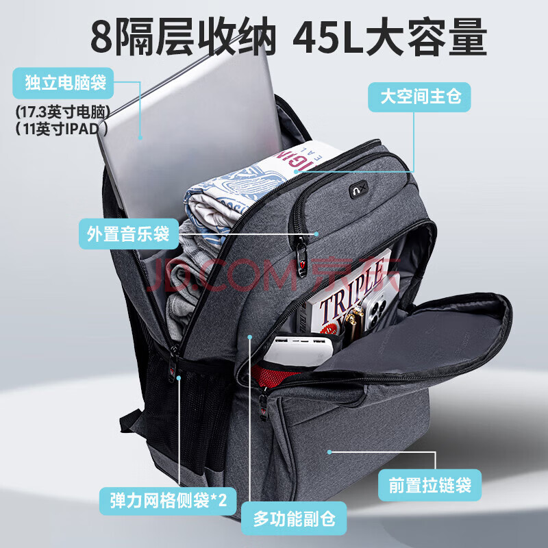 商品相册:VICTORIATOURIST双肩包笔记本电脑包17.3英寸游戏本旅行出差商务背包大容量书包第